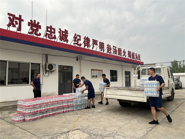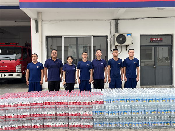7月25日下午,江蘇夢得新材料科技有限公司總經理杭康先生,副總經理許娟芳女士,副總經理任彬先生一行來到延陵消防站,爲戰鬥(dòu)在一線的消防指戰員送上酷暑慰問品,感謝他們對(duì)守衛一方平安所付出的努力與汗水。