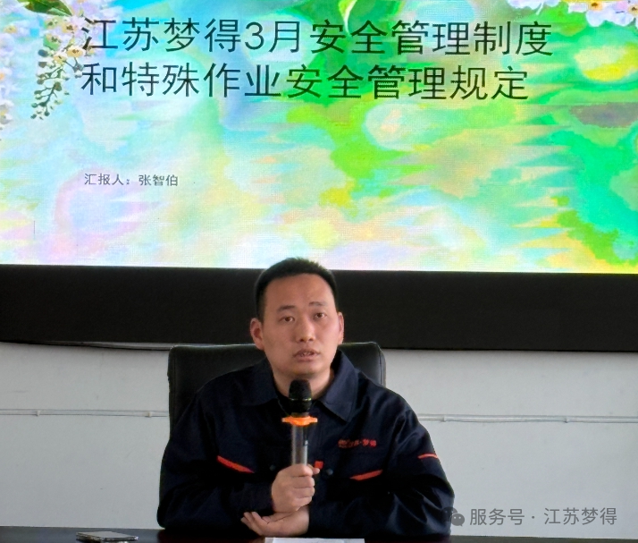 在企業的生産運營中,安全始終是重中之重。爲瞭(le)進一步提升員工的安全意識,強化安全管理,江蘇夢得於(yú)3月22日組織開展瞭(le)《安全管理制度和特殊作業安全管理規定》培訓。