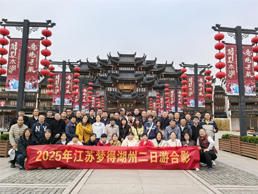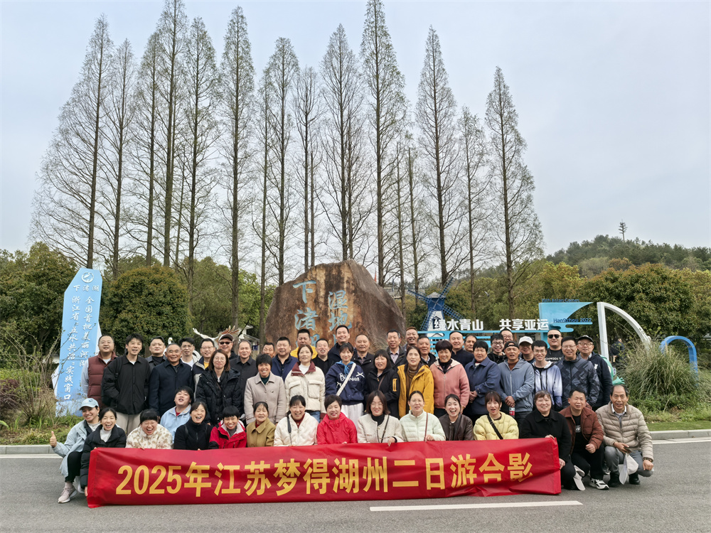 每一次旅行都是一次心靈的洗滌,每一次旅行都是一次對未知的探索。用腳步丈量世界,用心靈感受生活。在喧嚣塵世之外,有一片淨土,溫柔的召喚著(zhe)每一顆甯靜與美好的心。湖州,一個讓人心靈得以栖息的夢幻之地,正緩緩拉開它的神秘面紗!江蘇夢得新材料科技有限公司於3.30日組織瞭(le)2025年度公司旅遊----湖州二日遊。