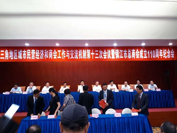 9月8日鎮江市工商聯執委、公司董事長杭冬良先生應邀參(cān)加瞭(le)長三角地區城市民營經濟和商會工作與交流機制第三十次大會暨鎮江市商會成立110周年慶典大會。