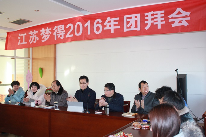 2016年2月15日(正月初八),夢得公司2016新春團拜會如期舉行。三樓會議室歡歌笑語,員工們歡聚一堂,互相拜年訴說著(zhe)對彼此最美好的新年祝福。今天,是公司新年開工日,也是公司舉行團拜會的日子,董事長杭冬良先生及總經理杭康先生向全體員工拜年並(bìng)發表講話。總經理杭康先生主要針對公司未來一年的發展目标及工作安排做瞭一個簡報,並(bìng)提出新的一年我們工作的著(zhe)重點在哪裏。同時也強調,2016年是我們夢得公司創立20周年的一年,感謝帶領公司不斷發展壯大的董事長杭冬良先生及在夢得服務十幾二十年的老員工們這些年所付出的努力與汗水,夢得将不斷吸收新鮮血液,繼續穩步向前走。财務副總許娟芳女士也送上瞭新年的祝福,生産副總王建坤先生則對生産工作做瞭安排調整,四人並(bìng)針對公司今年的工作做出瞭明確的部署。相信今年在杭董、杭總及其他核心層領導的帶領下,夢得公司2016年将更加輝煌。