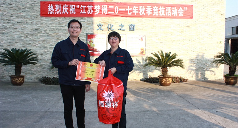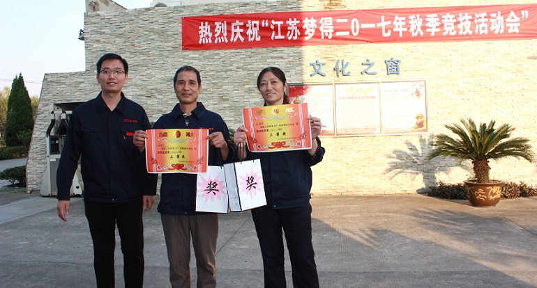 2017年11月2日,“江蘇夢得2017秋季競技活動(dòng)會”如期舉行並(bìng)取得圓滿成功。這次活動(dòng)會主要是爲瞭(le)加強企業文化建設,豐富員工生活;加強各部門同事間的溝通與協調(diào);增強企業的凝聚力。