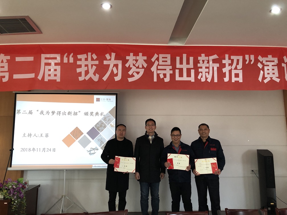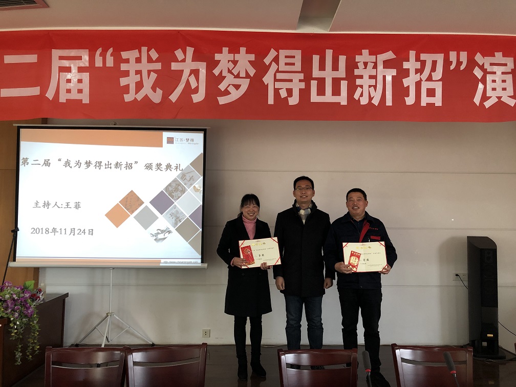2018年11月24日,夢得公司舉辦的第二屆“我爲夢得出新招”活動舉行瞭(le)頒獎儀式。此次活動共分爲兩個環節,分别是現場演講及實踐操作環節。現場演講及實踐打分已於(yú)之前完成,今日是最後激動人心的頒獎環節。