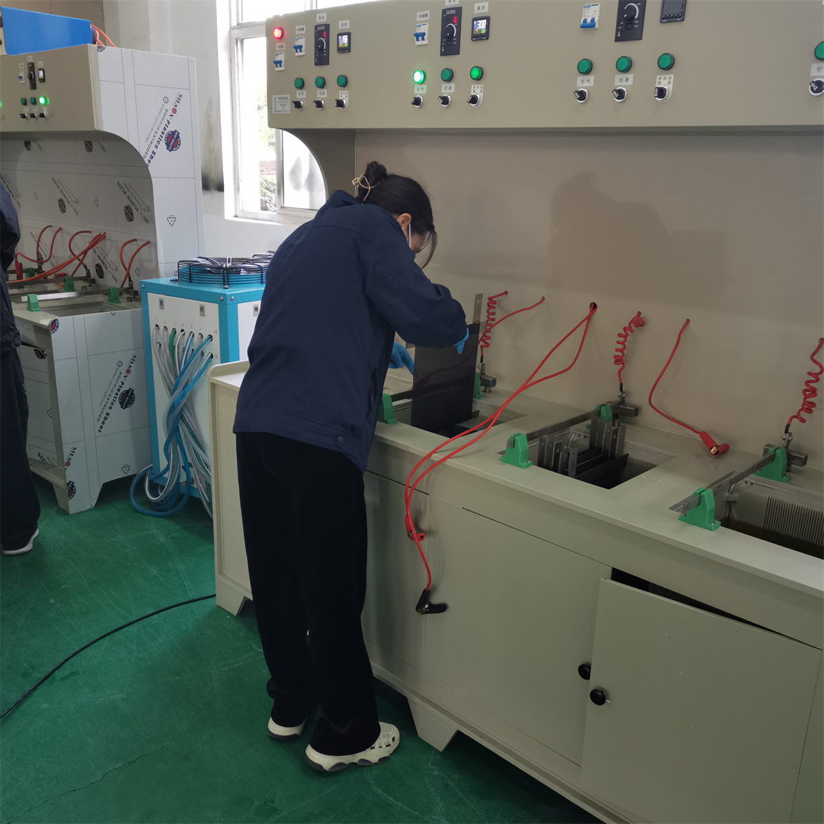 江蘇夢得研發室通過近幾年的對外交流,集合團隊的智慧,設計開發瞭(le)一套電鍍試驗一體機。該試驗系統集成瞭(le)多個電鍍槽體,並(bìng)對每個槽體配備瞭(le)溫控系統、電解液循環過濾系統、電源控制系統,並(bìng)實現陰陽極距離可調,可模拟多種電鍍工藝的生産現場。電鍍試驗一體機不僅可以做電鍍實驗,還能夠做标箔後處理的實驗,實現标箔後處理工藝中鍍銅、粗化、固化、鍍鋅鎳、鍍鉻以及防氧化塗覆的需求,從而對各個工序實現改良和突破。用試驗方法模拟電鍍生産(chǎn)工藝條件的必要性,爲越來越多的廣大科研工作者和生産(chǎn)廠(chǎng)家所認識。通過模拟試驗,能夠爲改進工藝操作,研究新電鍍液配方及新的處理方法等提供可靠手段,從而達到提高生産(chǎn)質量及産(chǎn)量的目的。